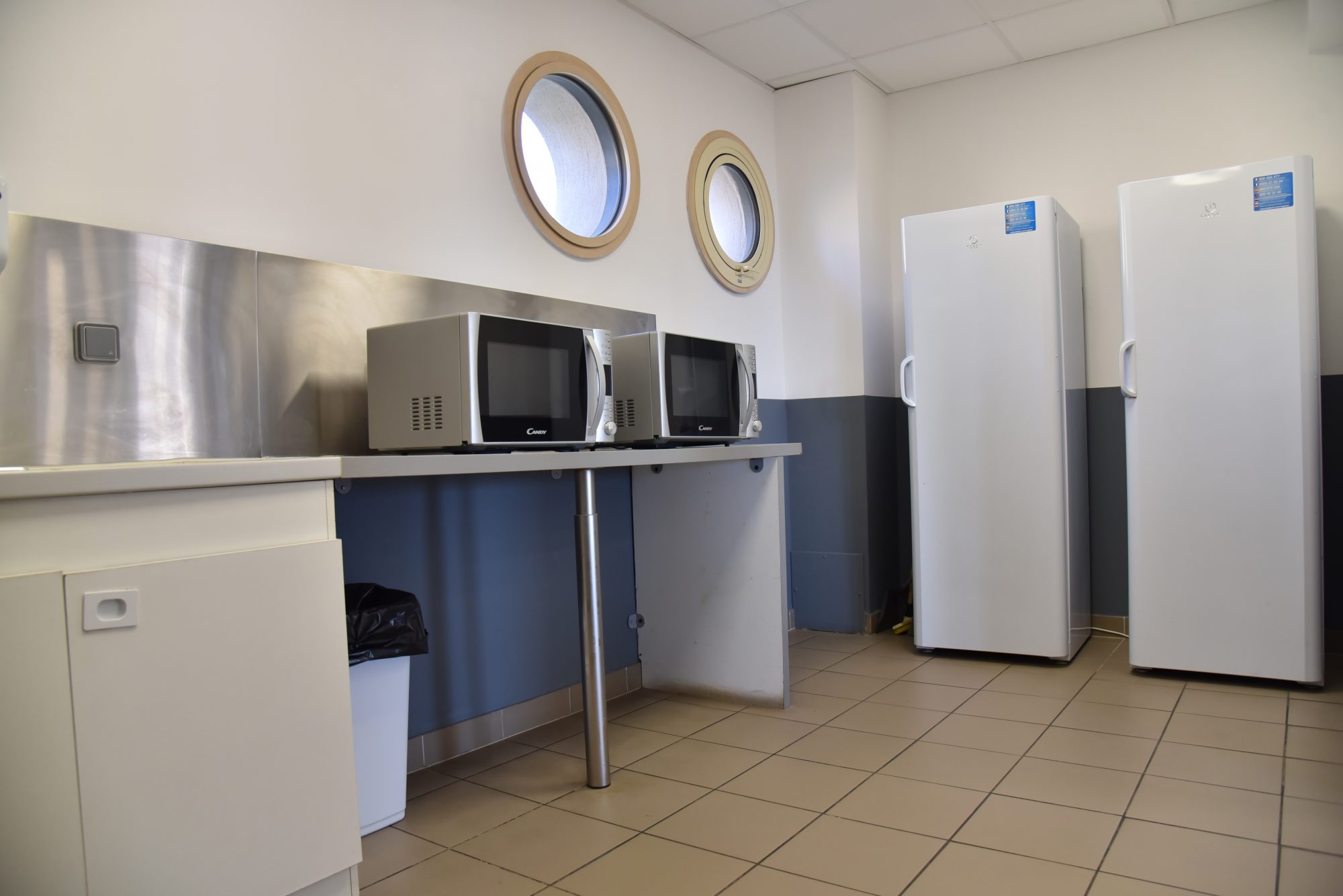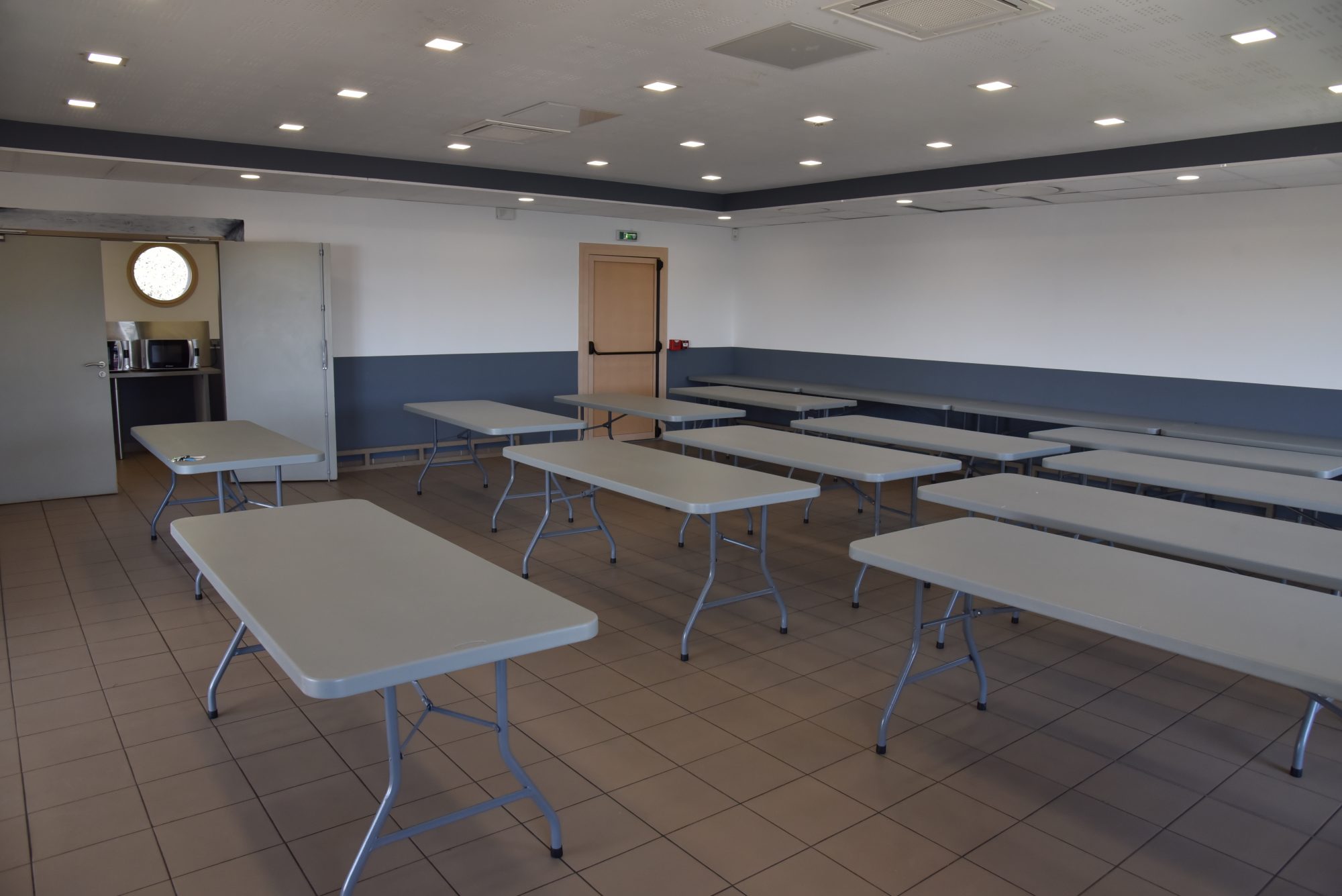 1 Salle polyvalente de 77,58 m2 , 1 petit office avec point d’eau froide, 2 réfrigérateurs et 2 micro ondes.