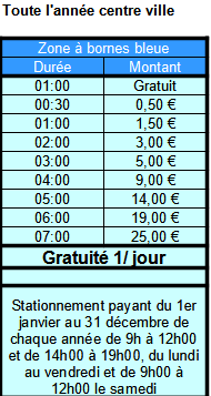 Possibilité de stationner en ville avec une carte d’abonnement : CLIQUEZ ICI