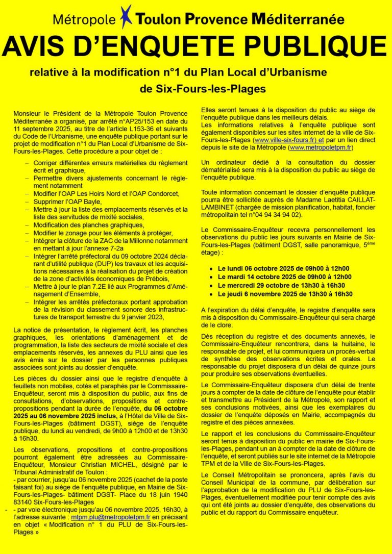 MISE À JOUR DU PLAN LOCAL D’URBANISME DE LA VILLE DE SIX-FOURS-LES-PLAGES