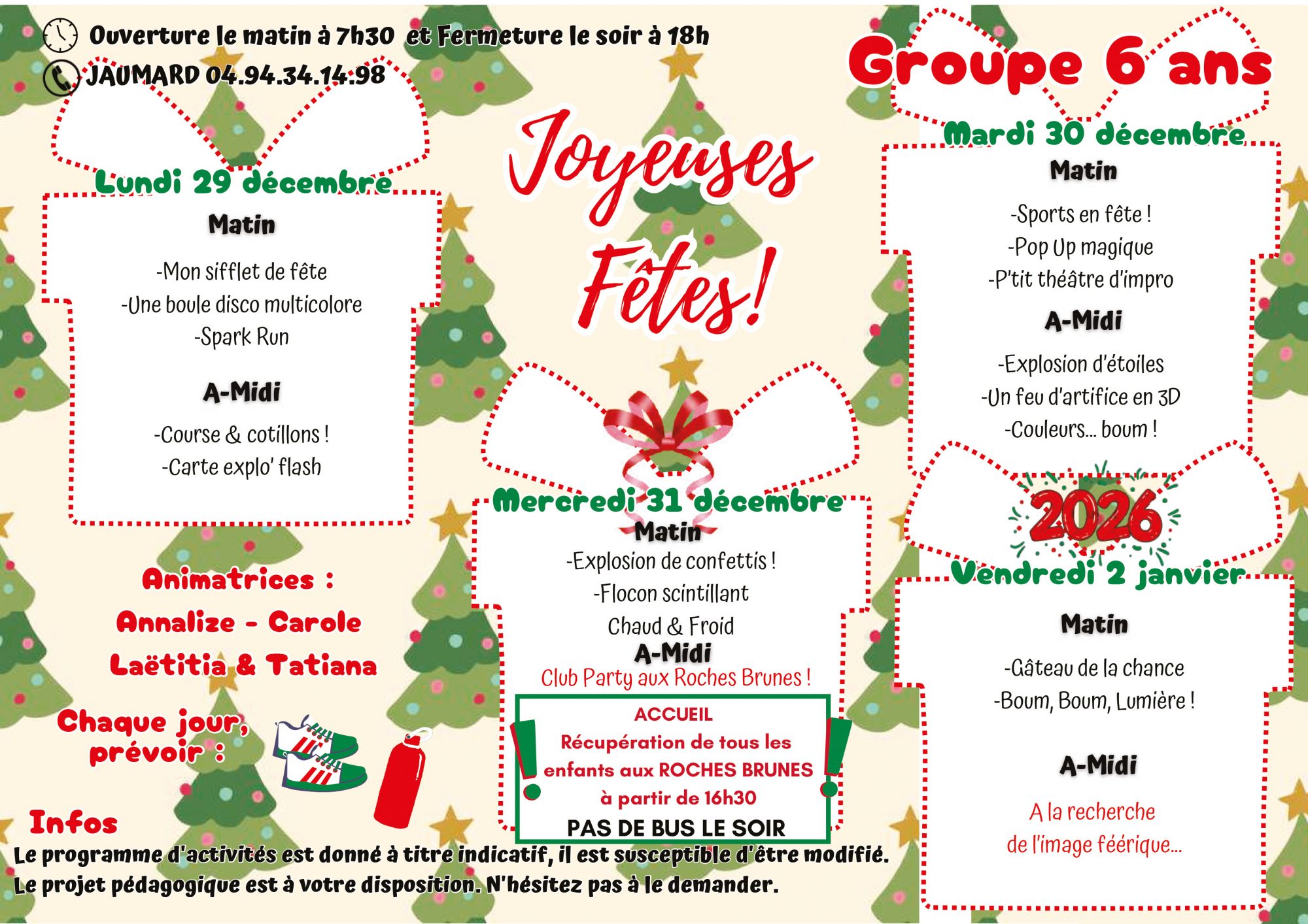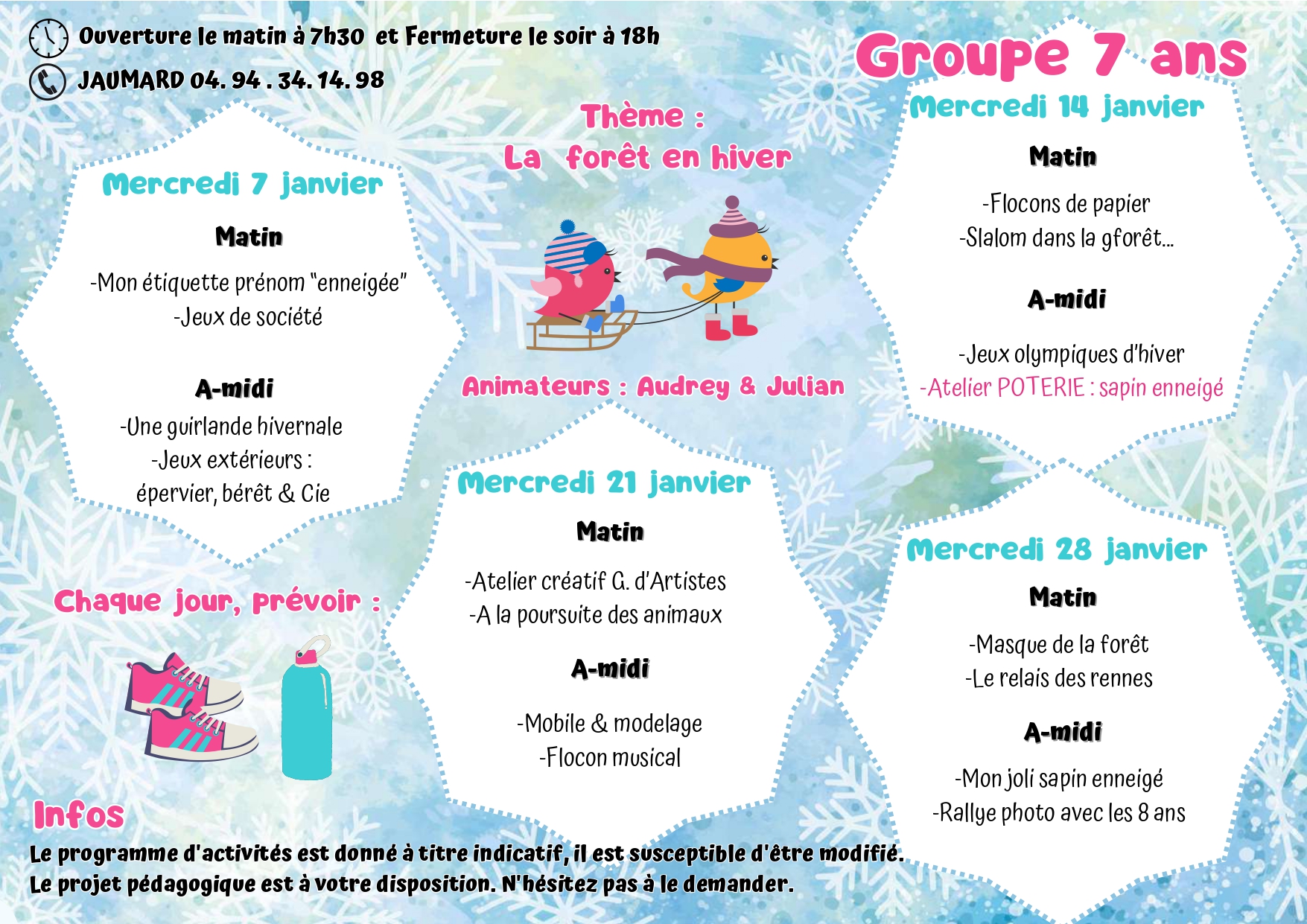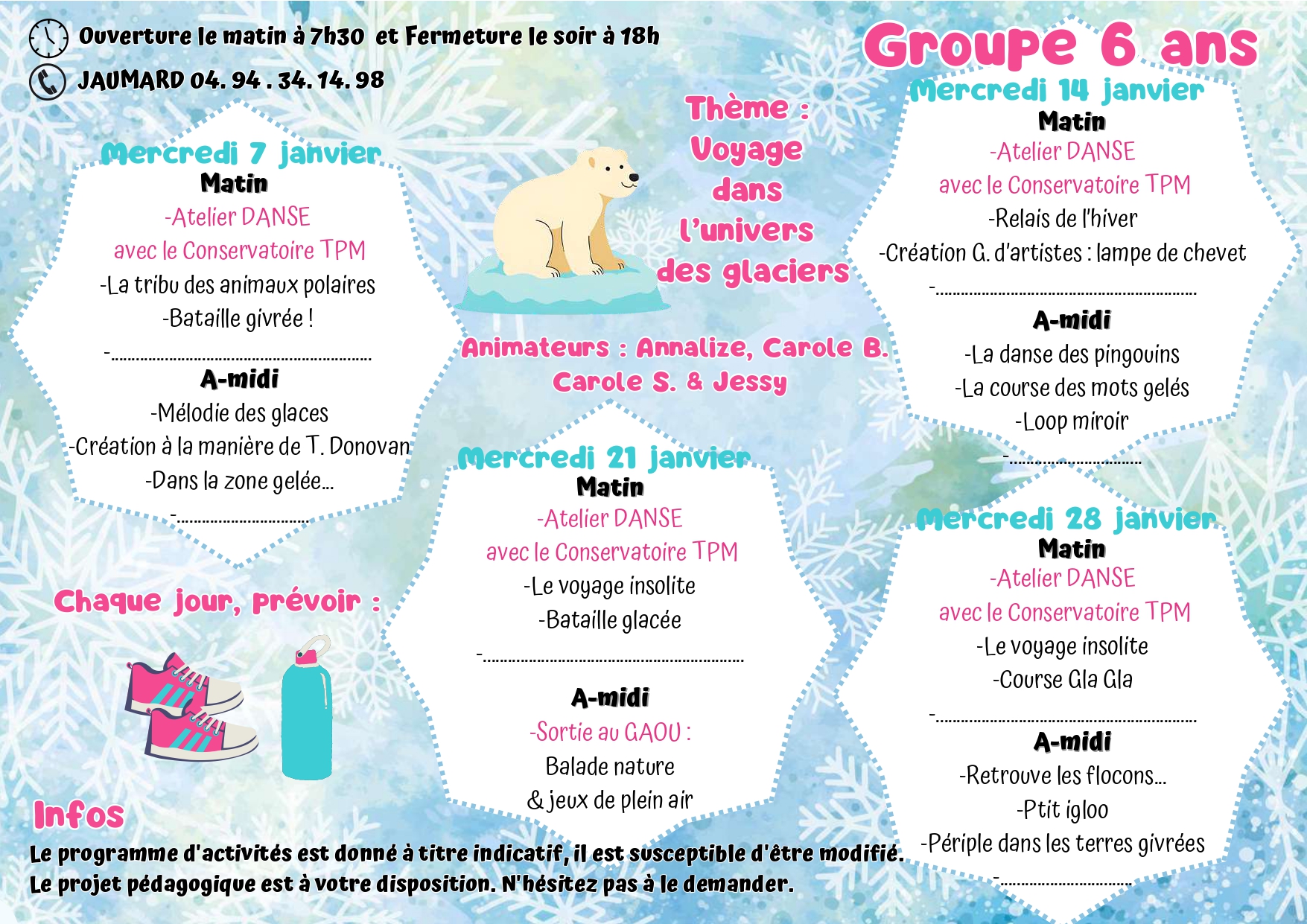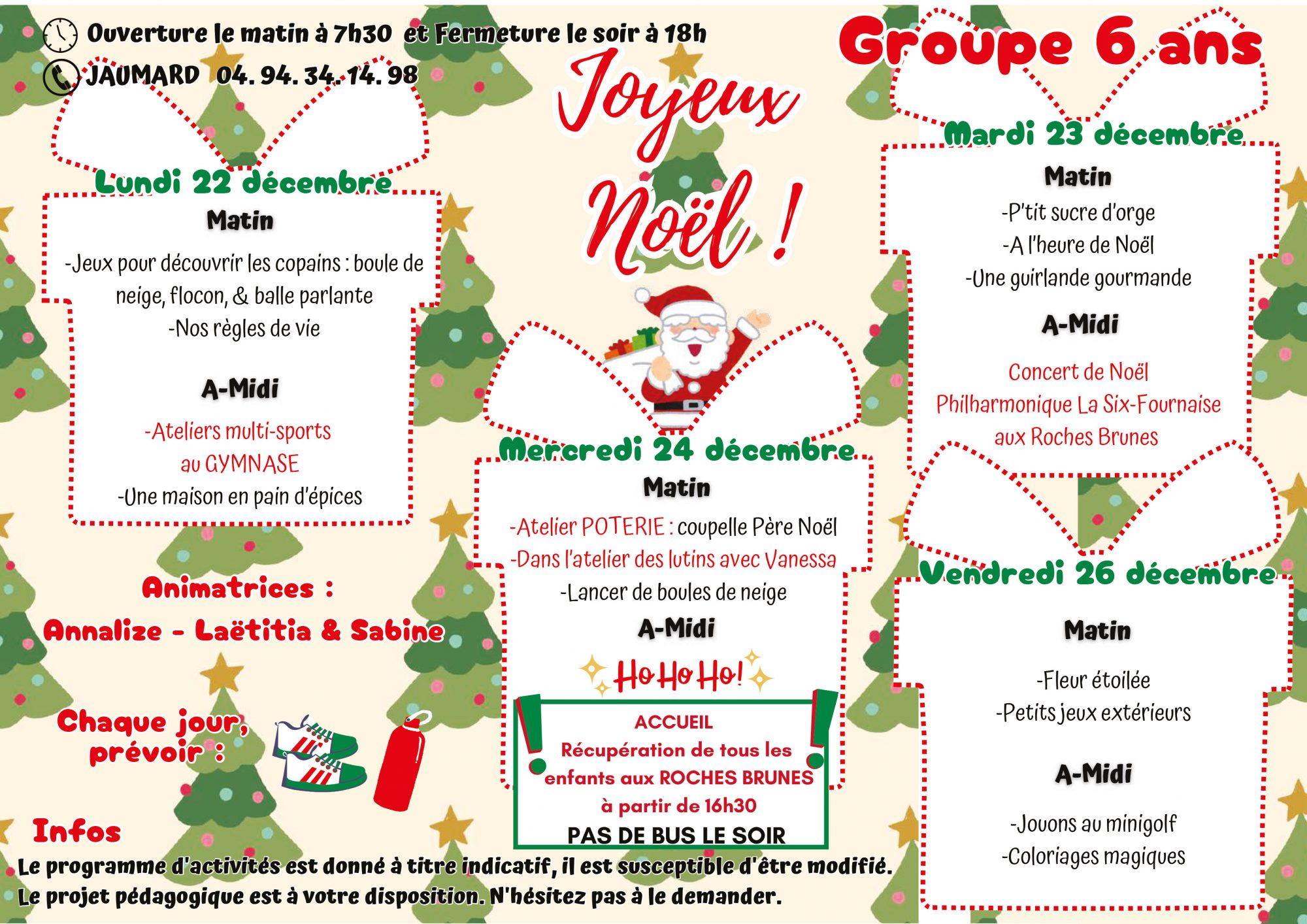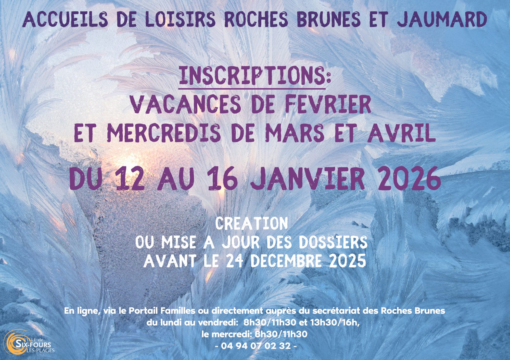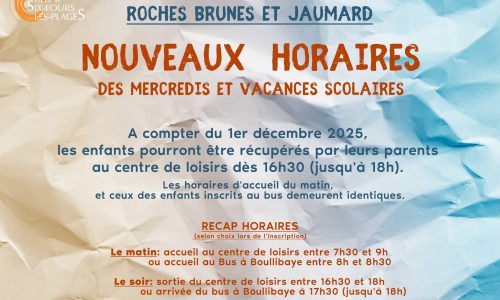 Pour toutes informations veuillez nous contacter : 04 94 07 02 32 ou centre-aere@6fours.fr