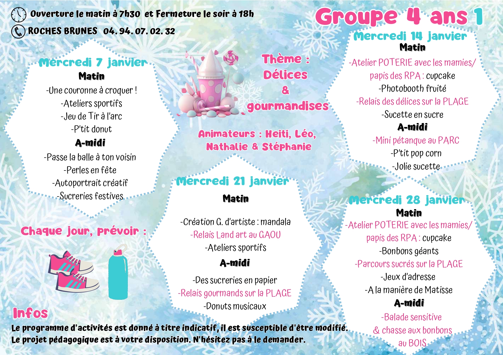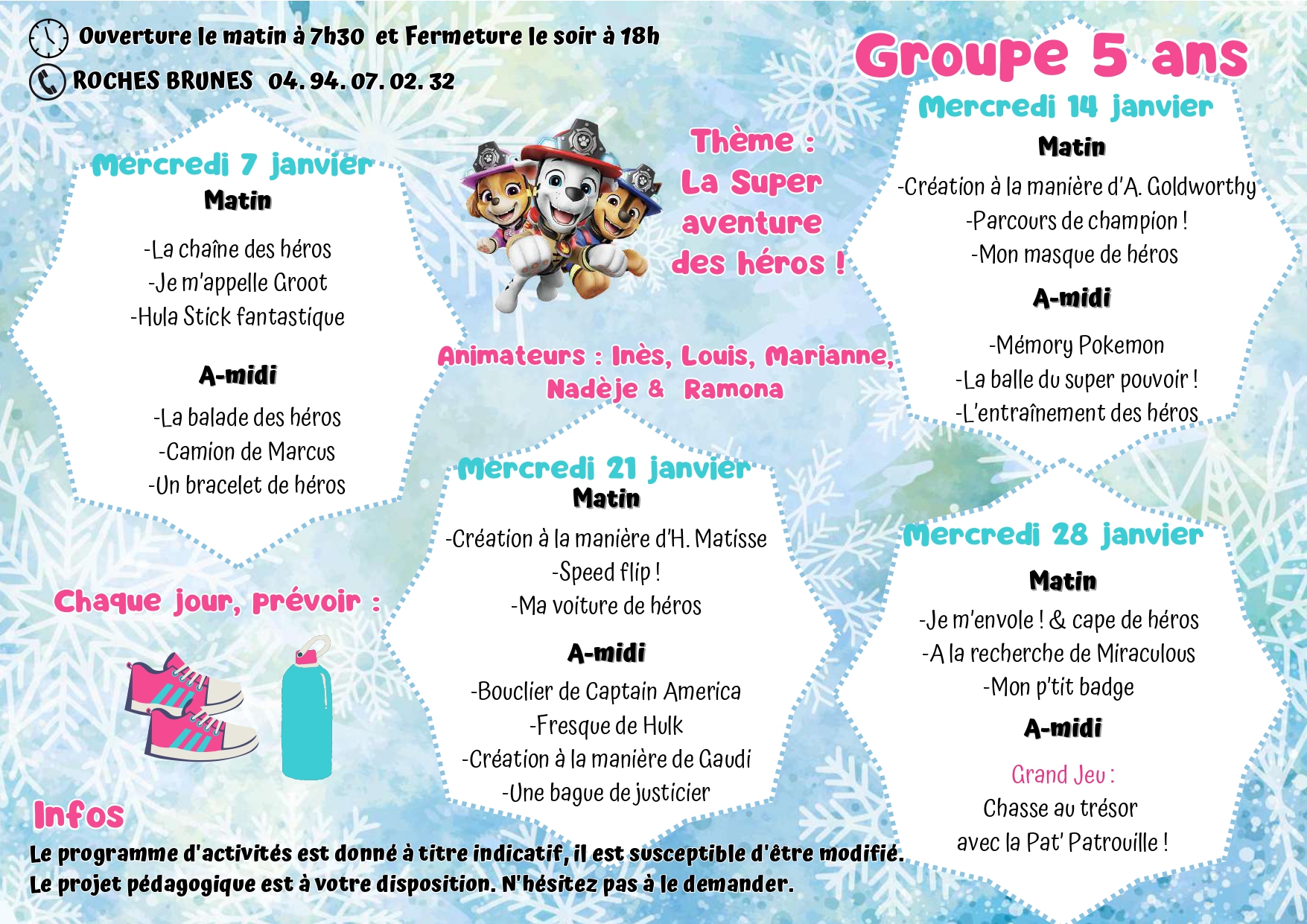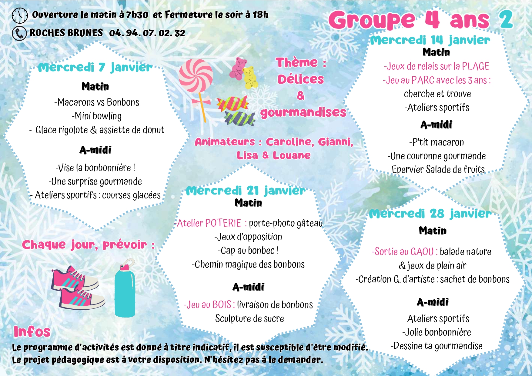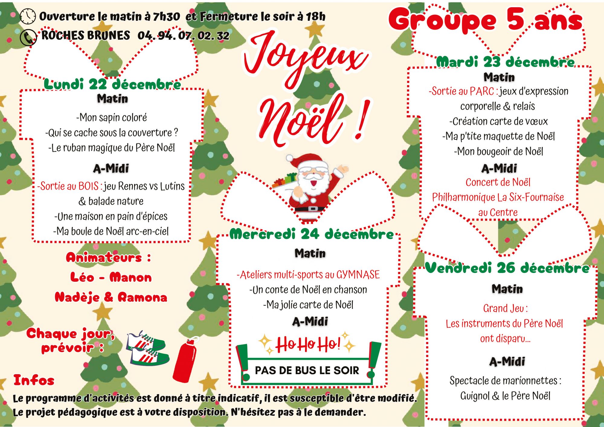 Pour toutes informations veuillez nous contacter : 04 94 07 02 32 ou centre-aere@6fours.fr