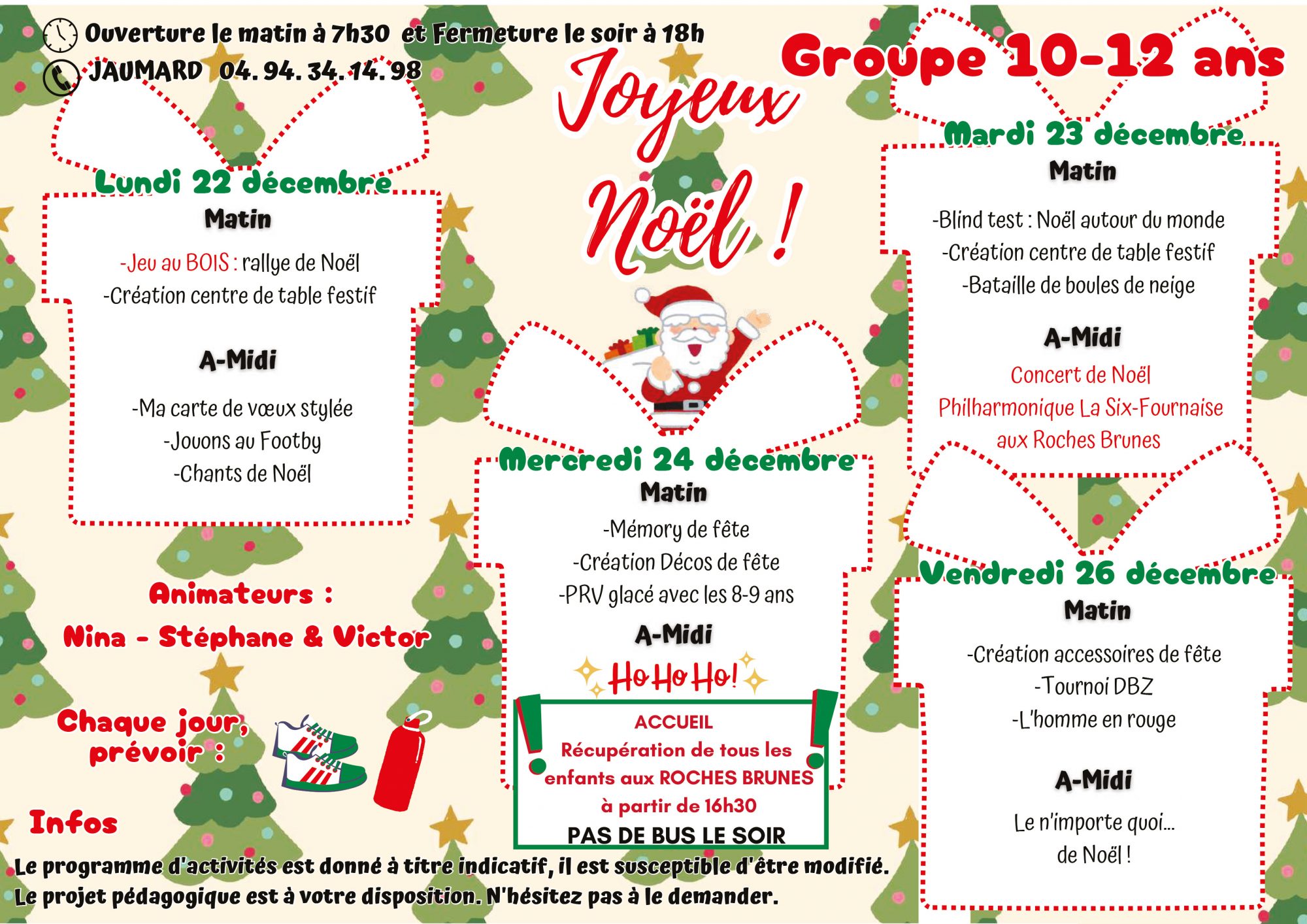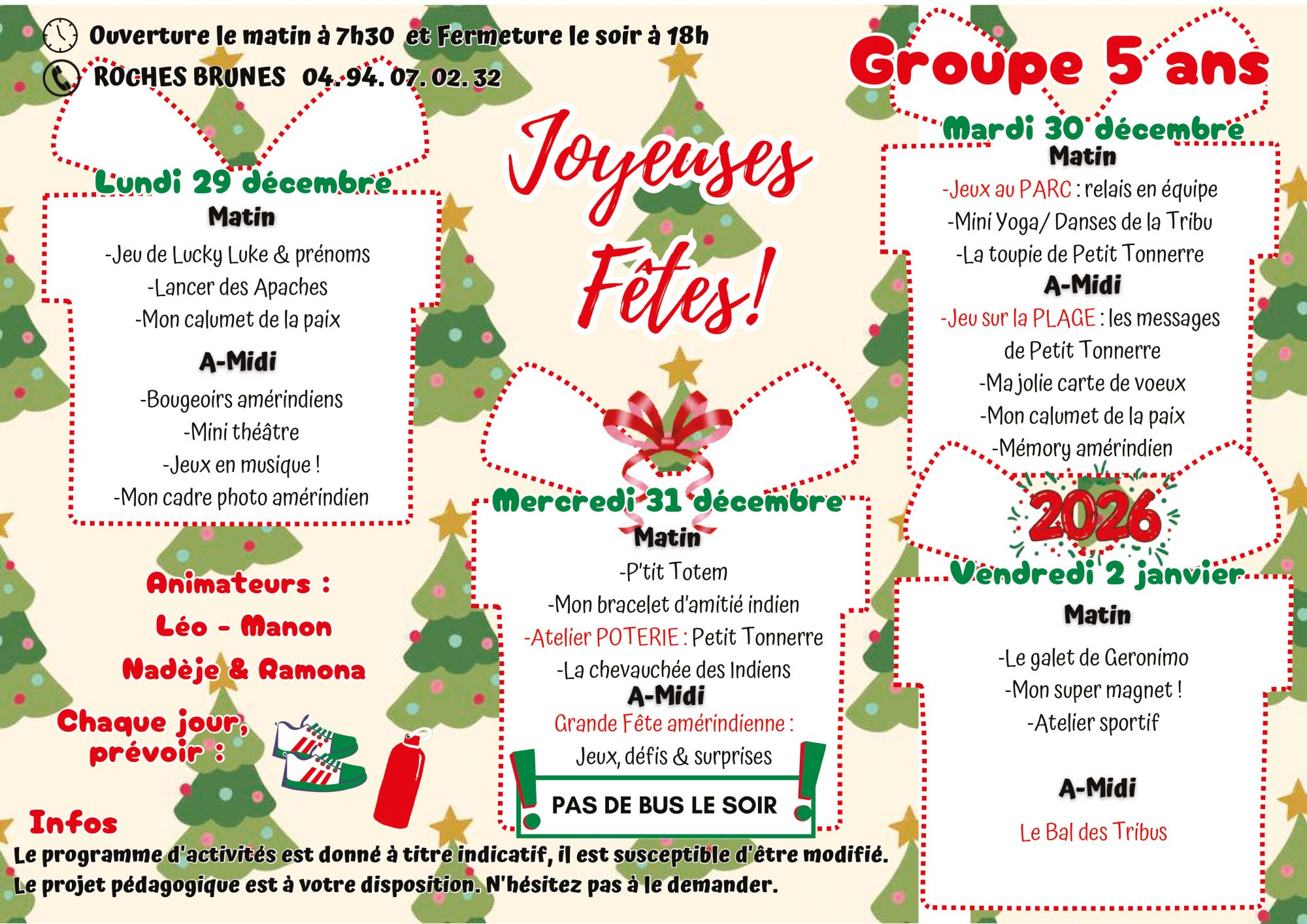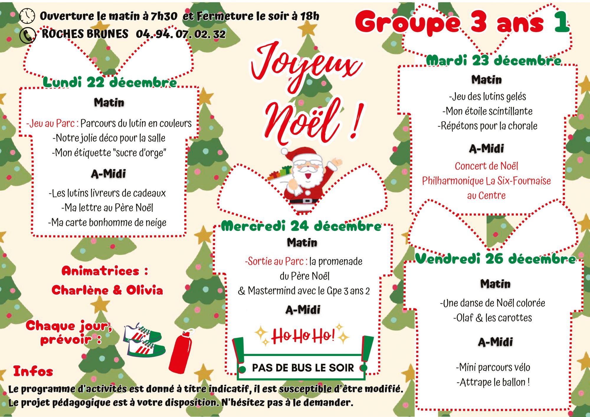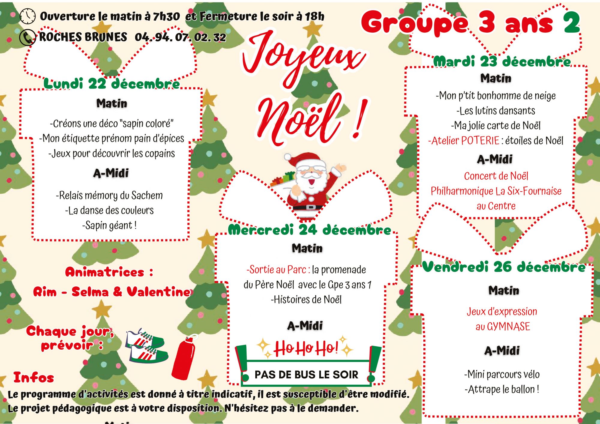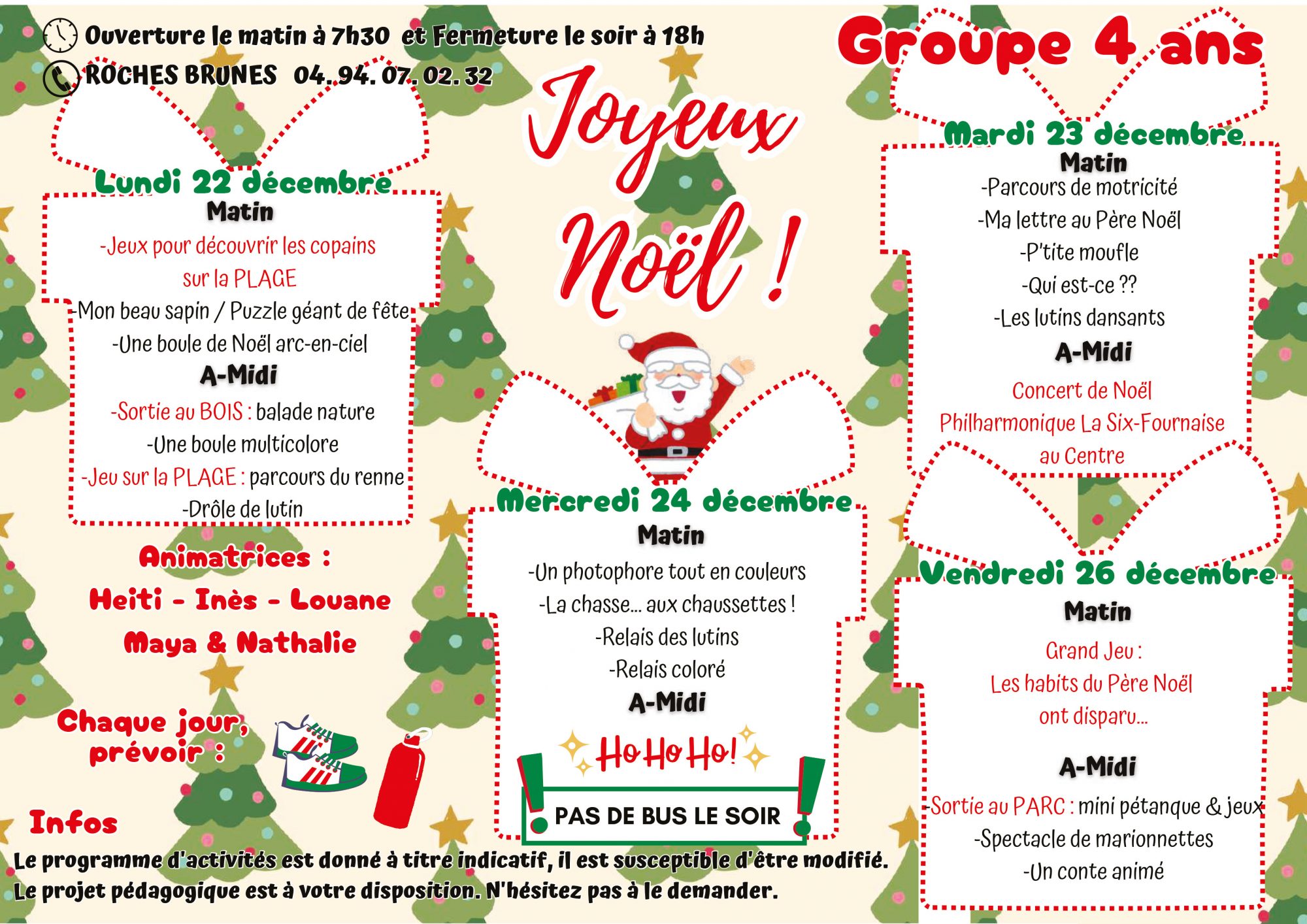 Pour toutes informations veuillez nous contacter : 04 94 07 02 32 ou centre-aere@6fours.fr