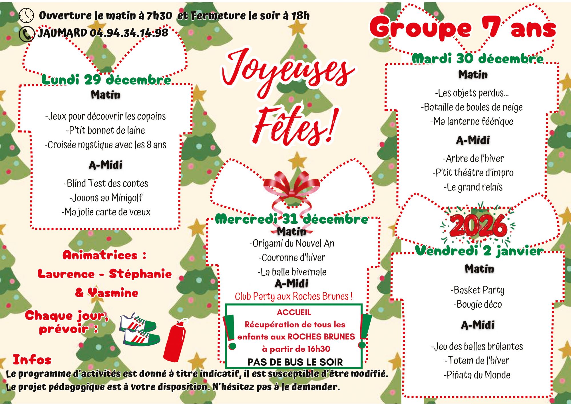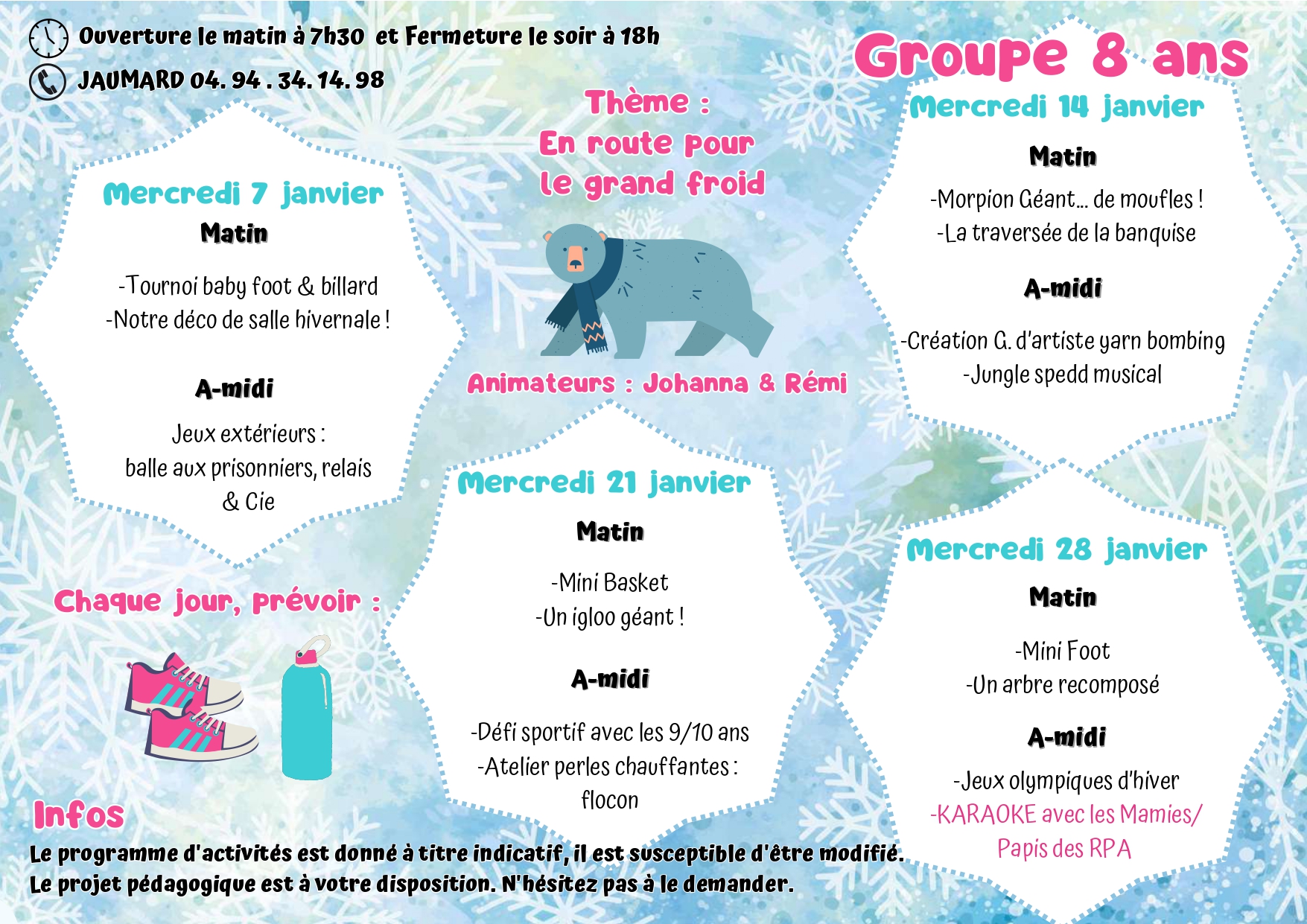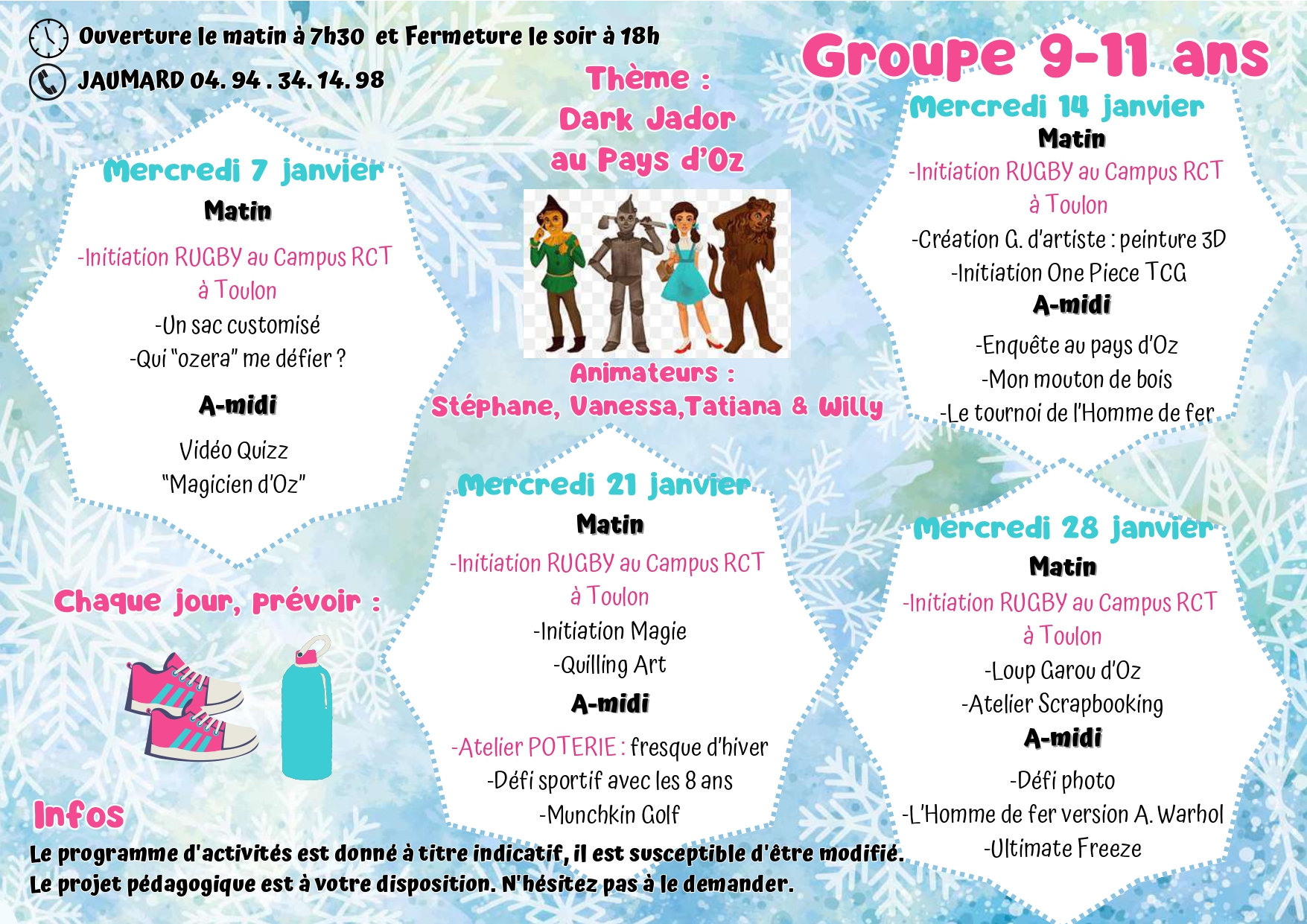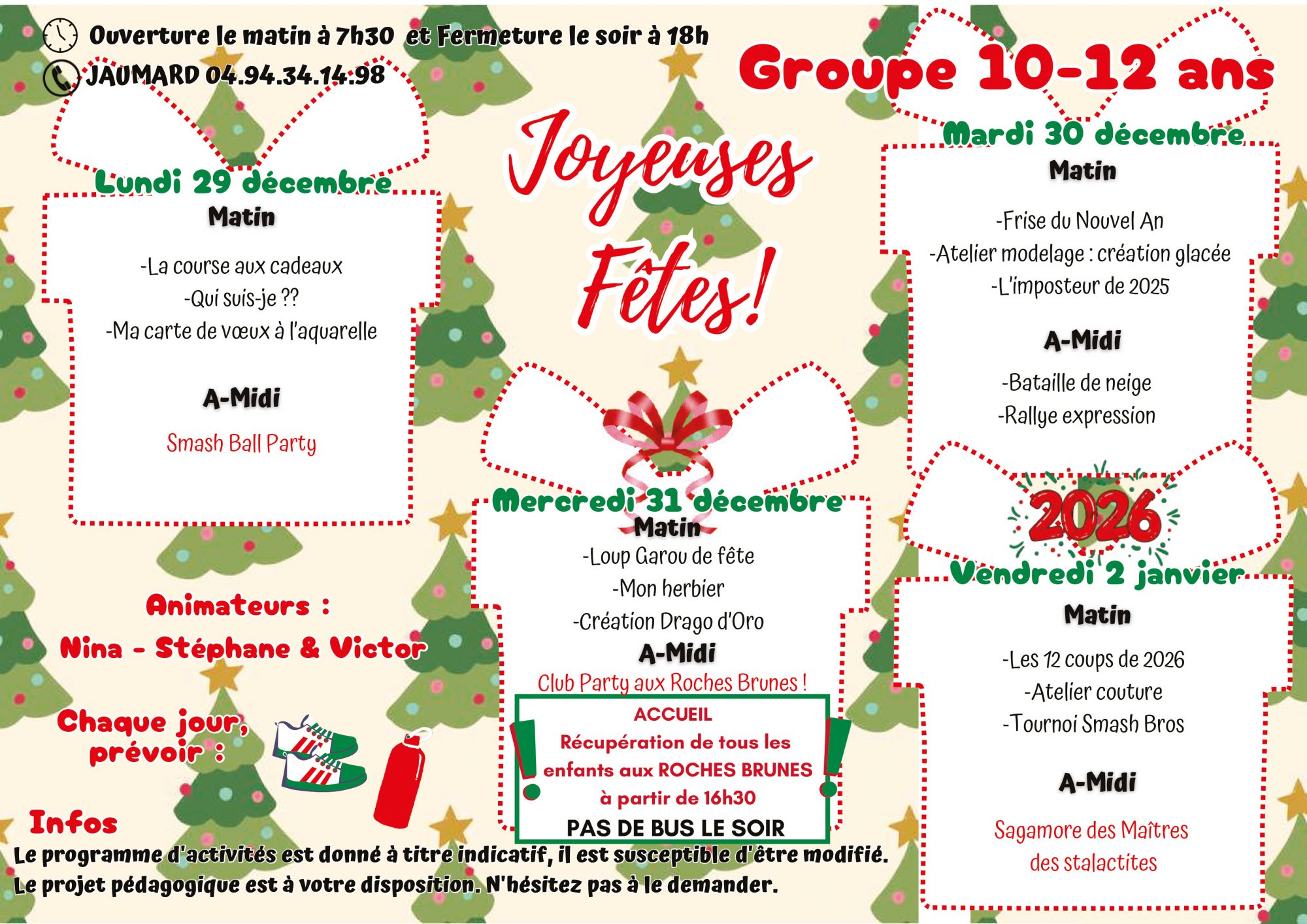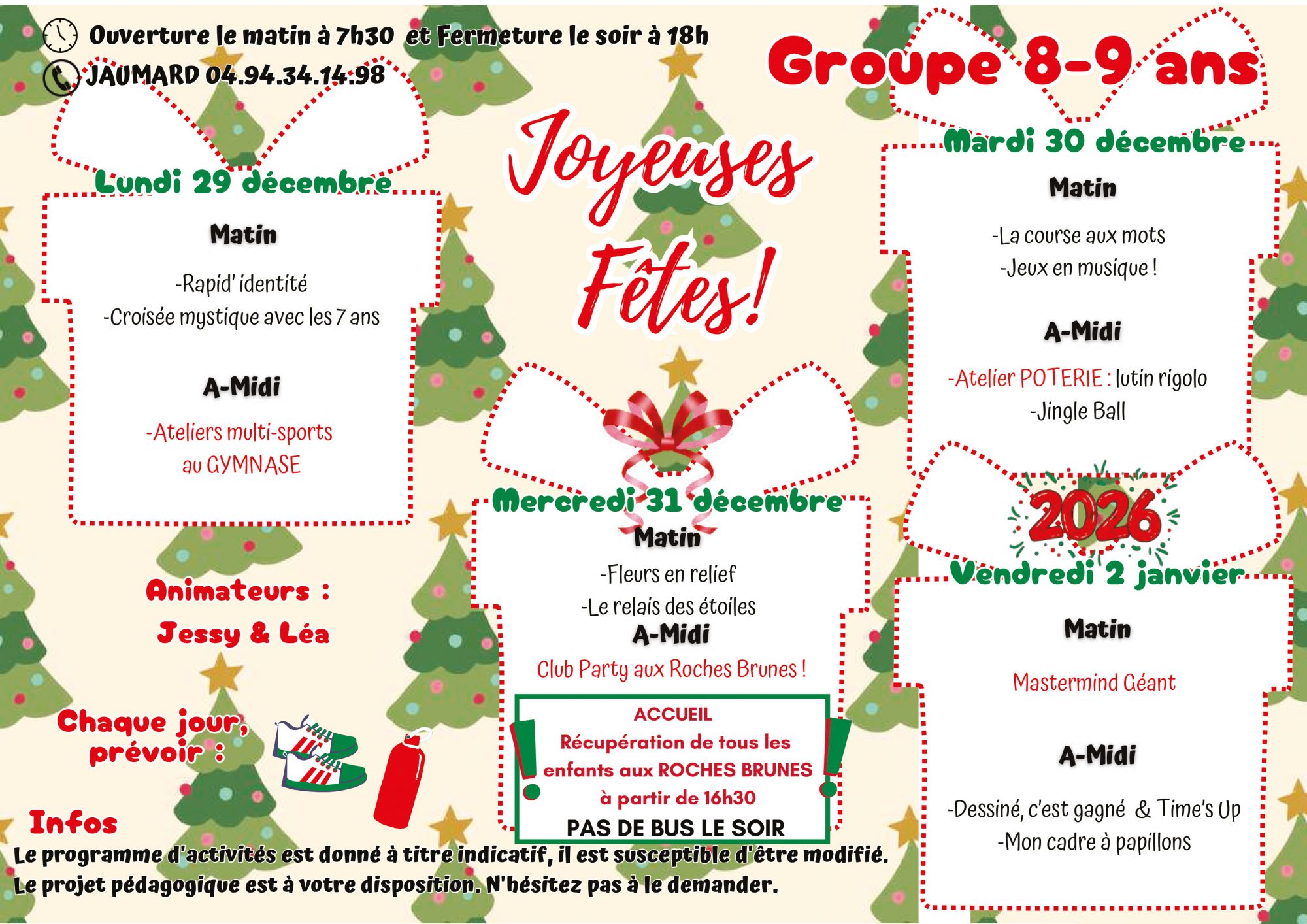 Pour toutes informations veuillez nous contacter : 04 94 07 02 32 ou centre-aere@6fours.fr