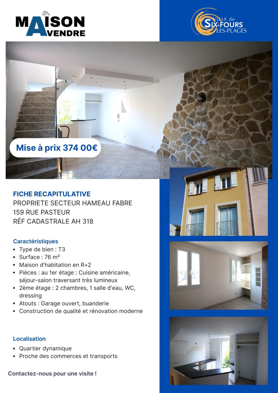 2 biens du hameau fabre proposés par la ville, dès à présent disponibles